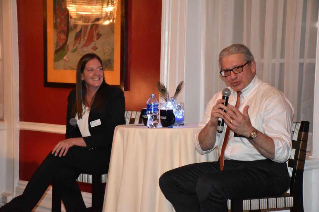 Eight years later the Network continues to thrive and has recently evolved into the Saint Peter’s Business Network, in order to draw people from all areas of business beyond only finance. Alumni in Finance was reimagined as the Saint Peter’s Business Network last year and the events still have the same goal in mind: to bring C-Suite speakers to intimate settings and unite graduates and friends of the University from all fields of business, share industry advice, offer mentorship and engage with the University. On the eighth anniversary of the network’s inaugural event, the group came together once again at India House (formerly Bayard’s) to hear from D’Amelio. Mary Kate Naatus, Ph.D., newly appointed KPMG dean of the Saint Peter’s University School of Business joined him for a discussion followed by a Q&A.
