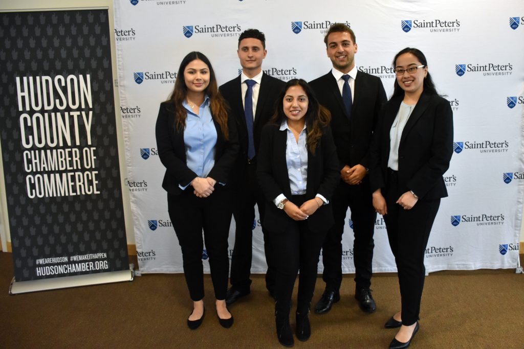 Town and Gown is a collaborative effort developed by the School of Business at Saint Peter’s University and the Hudson County Chamber of Commerce in which students are partnered with local Chamber of Commerce members. The Chamber businesses provide the students with an actual challenge they are facing and the students are tasked with recommending solutions. The students who participate in Town and Gown present their recommendations and findings to their peers and a panel of judges. This year’s presentations were held on April 26.