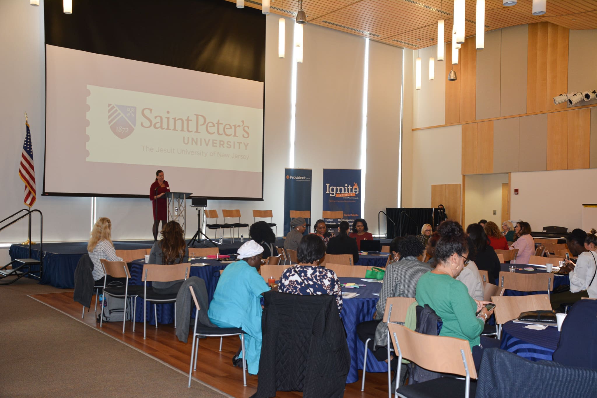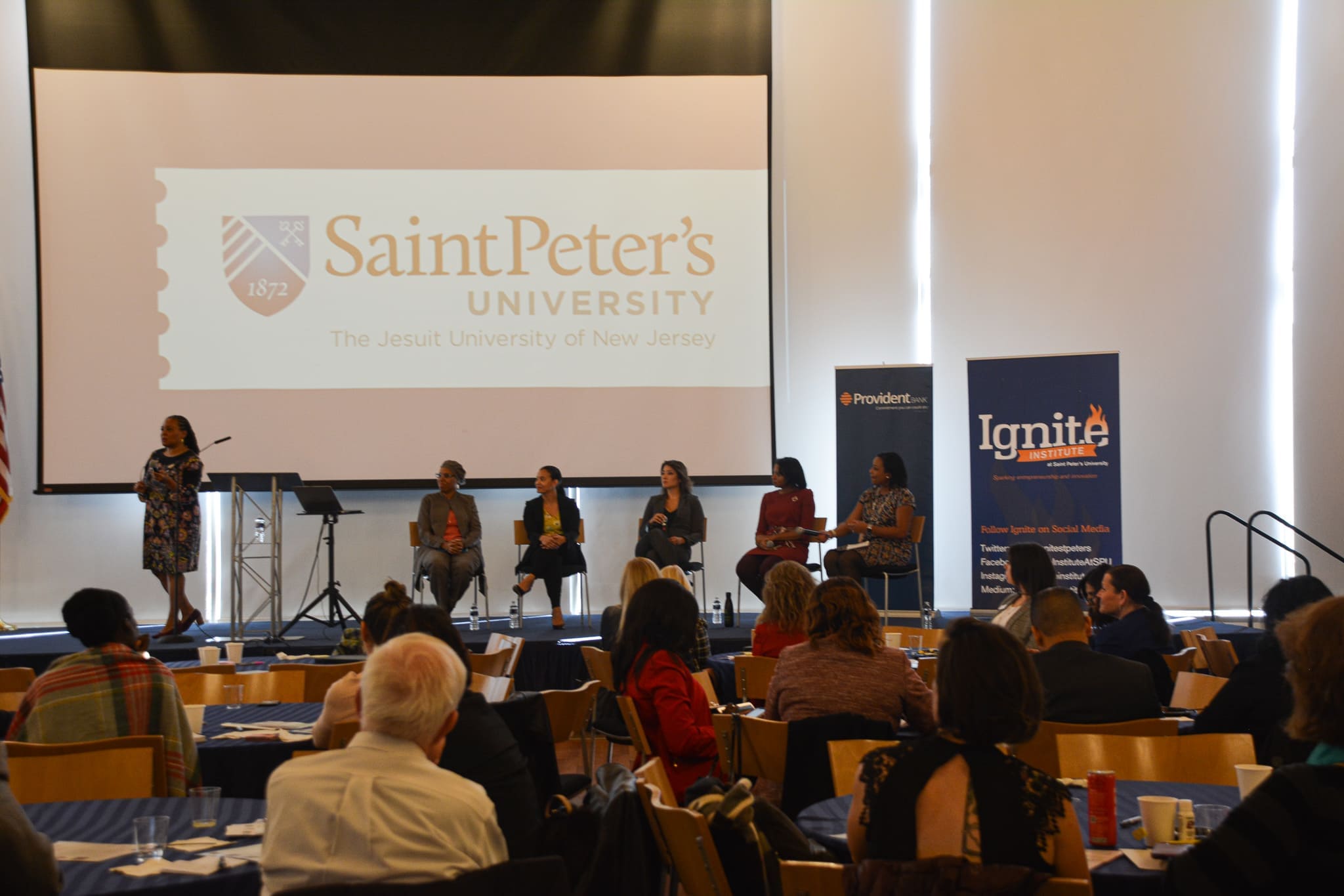 This Ignite Institute’s Women Entrepreneurship Symposium was the first of three prominent public events to be supported by The Provident Bank Foundation Signature grant. Awarded to the Ignite Institute of Saint Peter’s University in 2019, the grant seeks to support the newly launched Urban Social Impact Incubator and spur economic development and entrepreneurial empowerment both on campus and in the local community. More specifically, the grant will support socially impactful businesses and nonprofit organizations in accelerating their outcomes and impact while also pairing talented Saint Peter’s Social Impact Student Interns with socially impactful organizations, helping to accelerate the students’ professional development and complementing the business knowledge learned in their classroom curriculum.