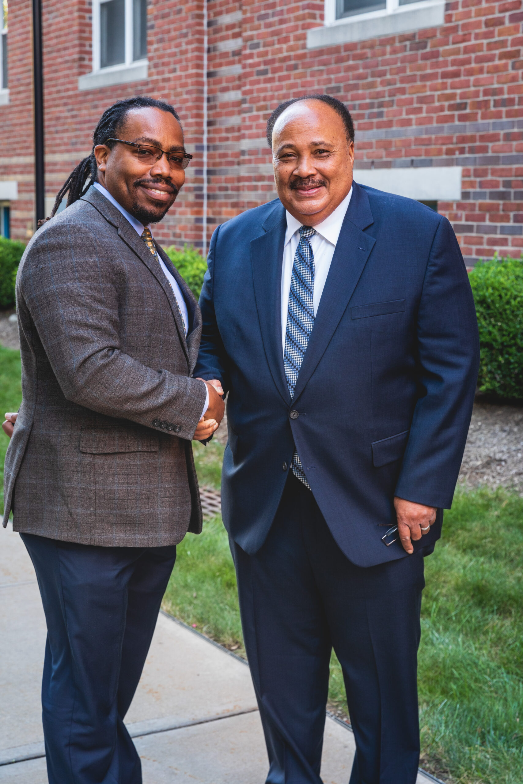Johnson (left) with Martin Luther King III H ’21 (right) at Saint Peter’s 2021 Michaelmas Convocation.