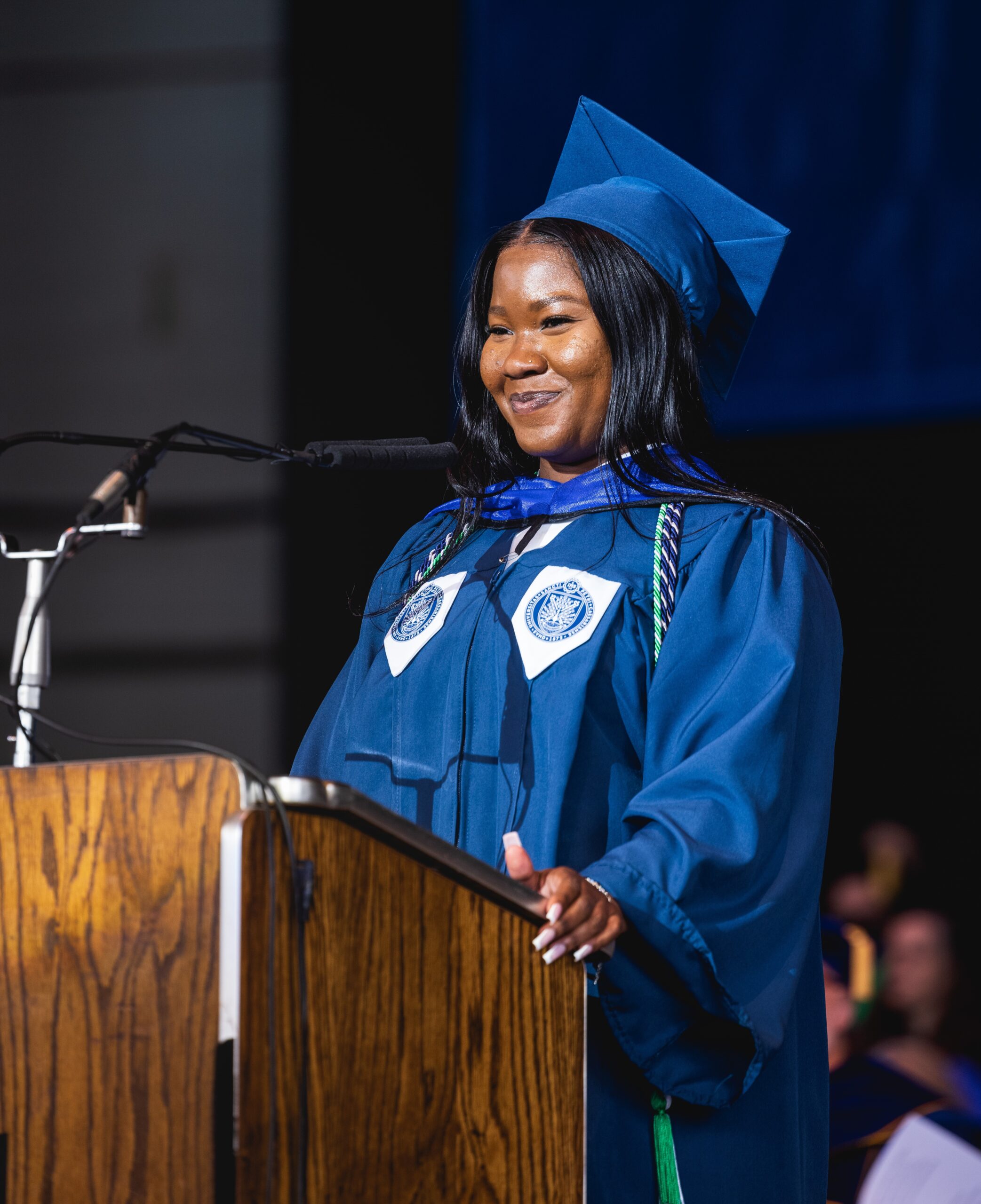 All of the sentiments that Dr. Cornacchia shared during his commencement address were subsequently reflected in the speeches of the undergraduate speaker, Jheannelle Shameela Witter ’24, and the graduate speaker, Tonya Elisha Mele ’24.