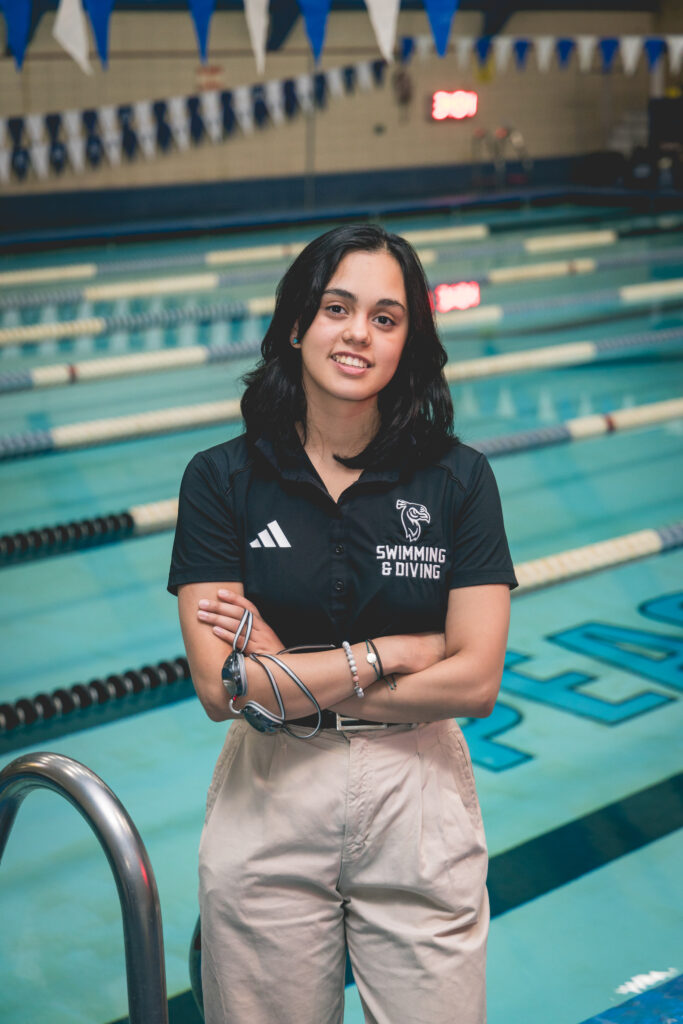 Competing in the United States also allows student-athletes to compete against the best. Swimmer Francesca Vargas ’27 competed in the national championships in her native Mexico when she was 13, but even with that pedigree she was surprised by the average speed of her competition when she first arrived stateside. Vargas specializes in the 100- and 200-yard backstroke events and is aiming to set new personal bests this season. The student-athlete experience has been especially rewarding for Vargas, who praised the sense of community she feels in the pool and among her classmates and instructors.