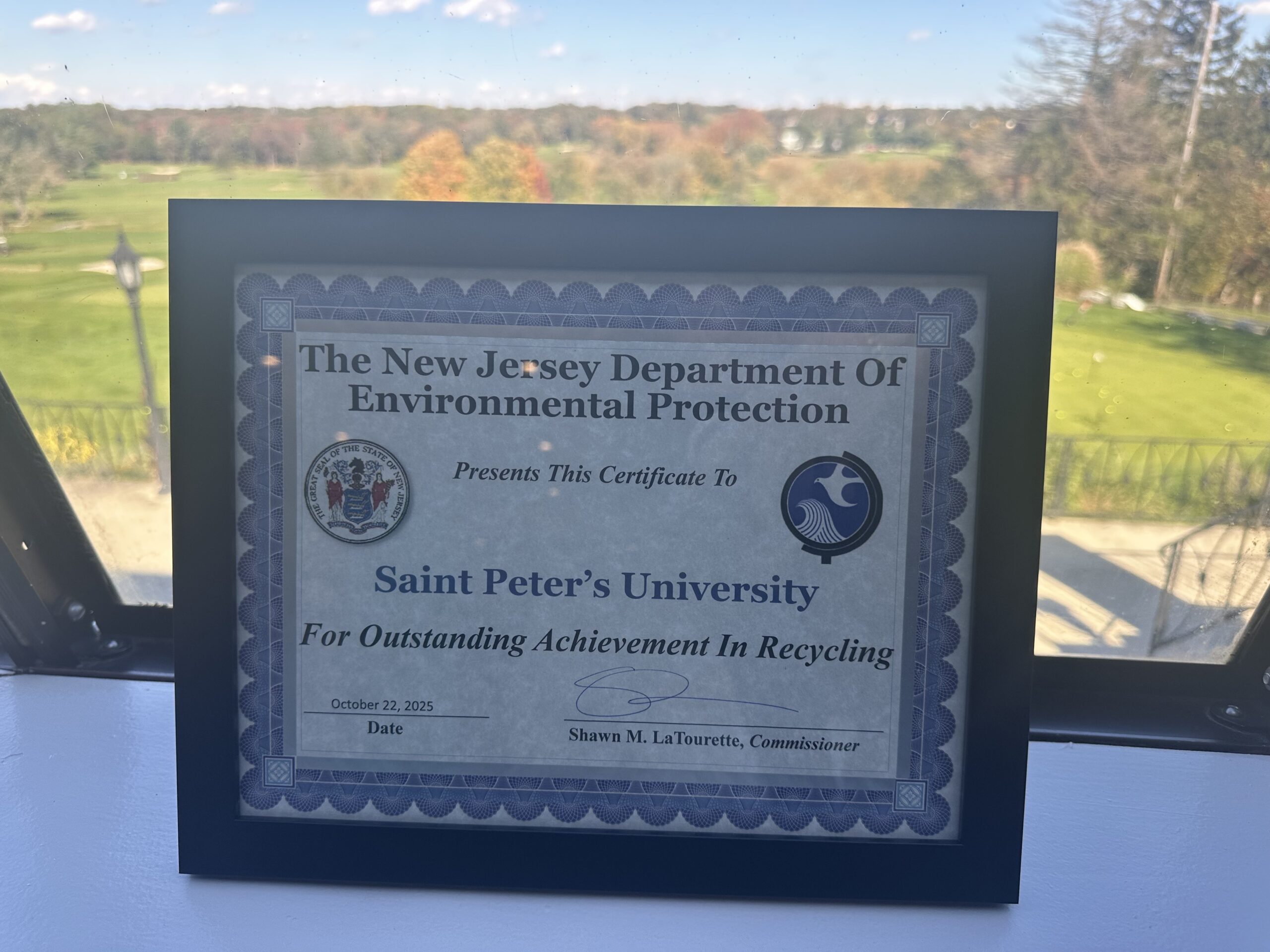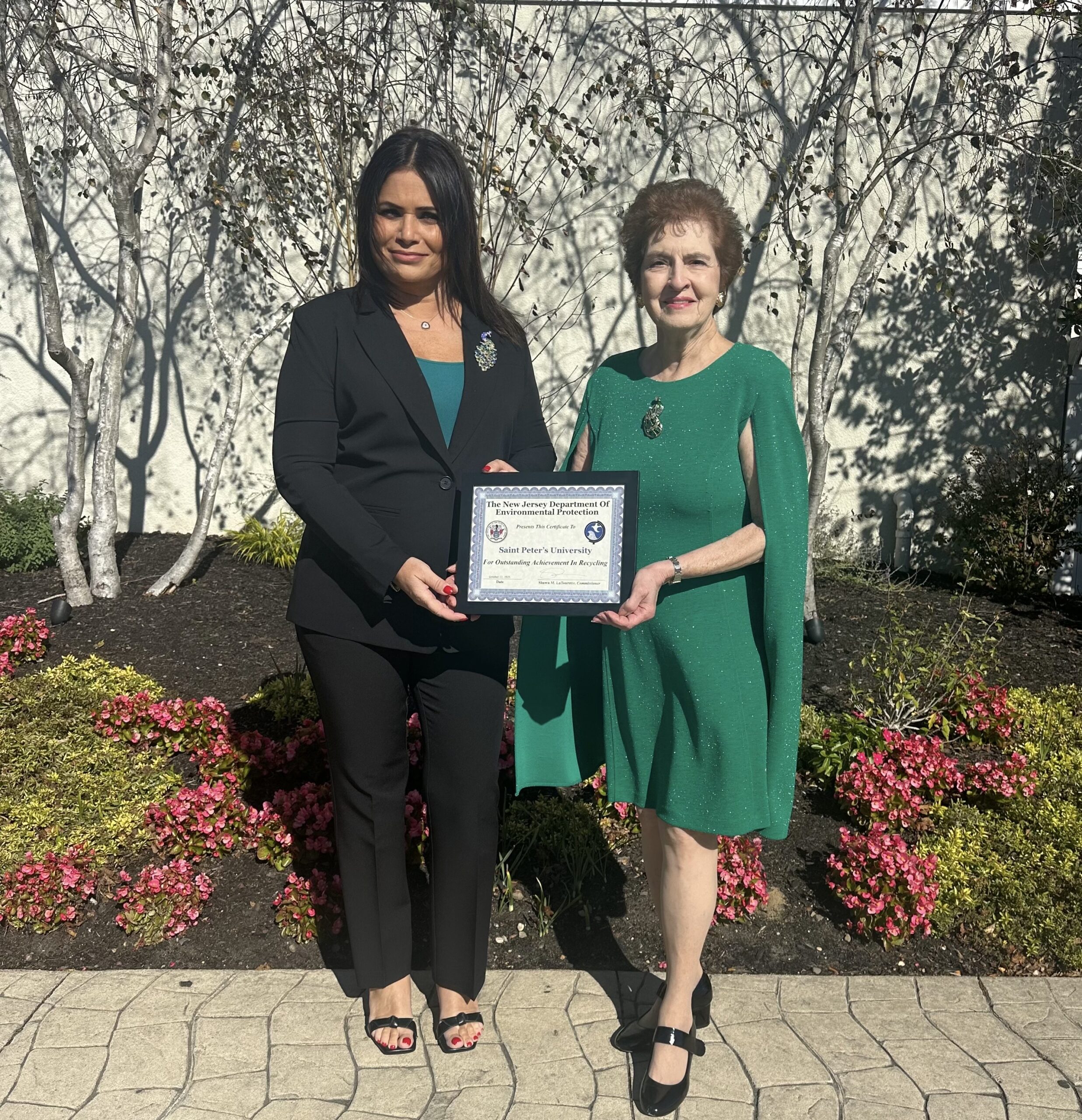 Saint Peter’s University was the proud recipient of the 2025 NJDEP Recycling Award in the Institution category at the Association of New Jersey Recyclers (ANJR) Annual Recycling Symposium & Awards Ceremony. The ANJR is committed to the support, promotion and enhancement of source reduction, reuse practices, organics management, and recycling activities in the State of New Jersey