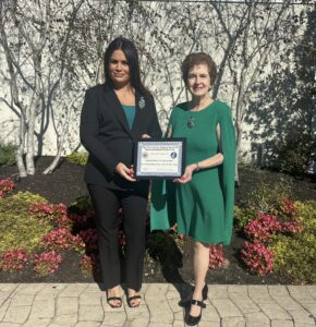 Anna DePaula, Assistant Vice President of Campus Services and Facilities, and Dr. Eileen Poiani, Chair of the Sustainability Council, accepted the award from Steven Rinaldi of the NJDEP Bureau of Sustainability at the Jumping Brook Country Club in Neptune, NJ, on October 22, 2025.