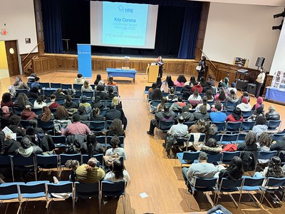 In conjunction with the anniversary of this strategic partnership, YPIE Jersey City inducted its third (and largest) group of students into the organization on Wednesday, December 10, with a ceremony in the Roy Irving Theater. As part of this induction, 45 freshmen and sophomores from three Jersey City public high schools formally joined the YPIE Jersey City’s Scholars program, part of a class of 67 new YPIE Scholars joining the program this year. This year marked the first time in which James J. Ferris High School students were represented in addition to Abraham Lincoln and William L. Dickinson High Schools.