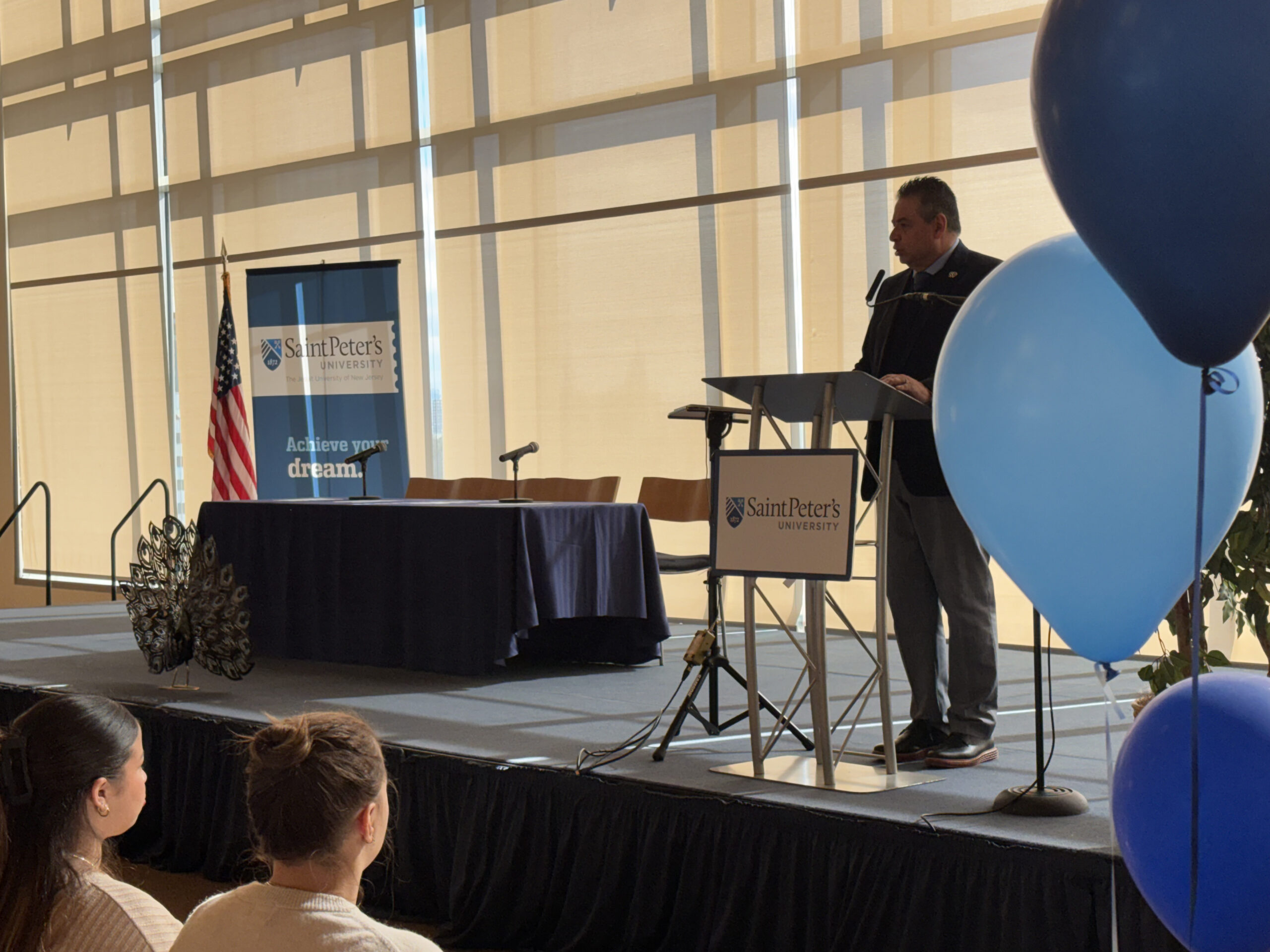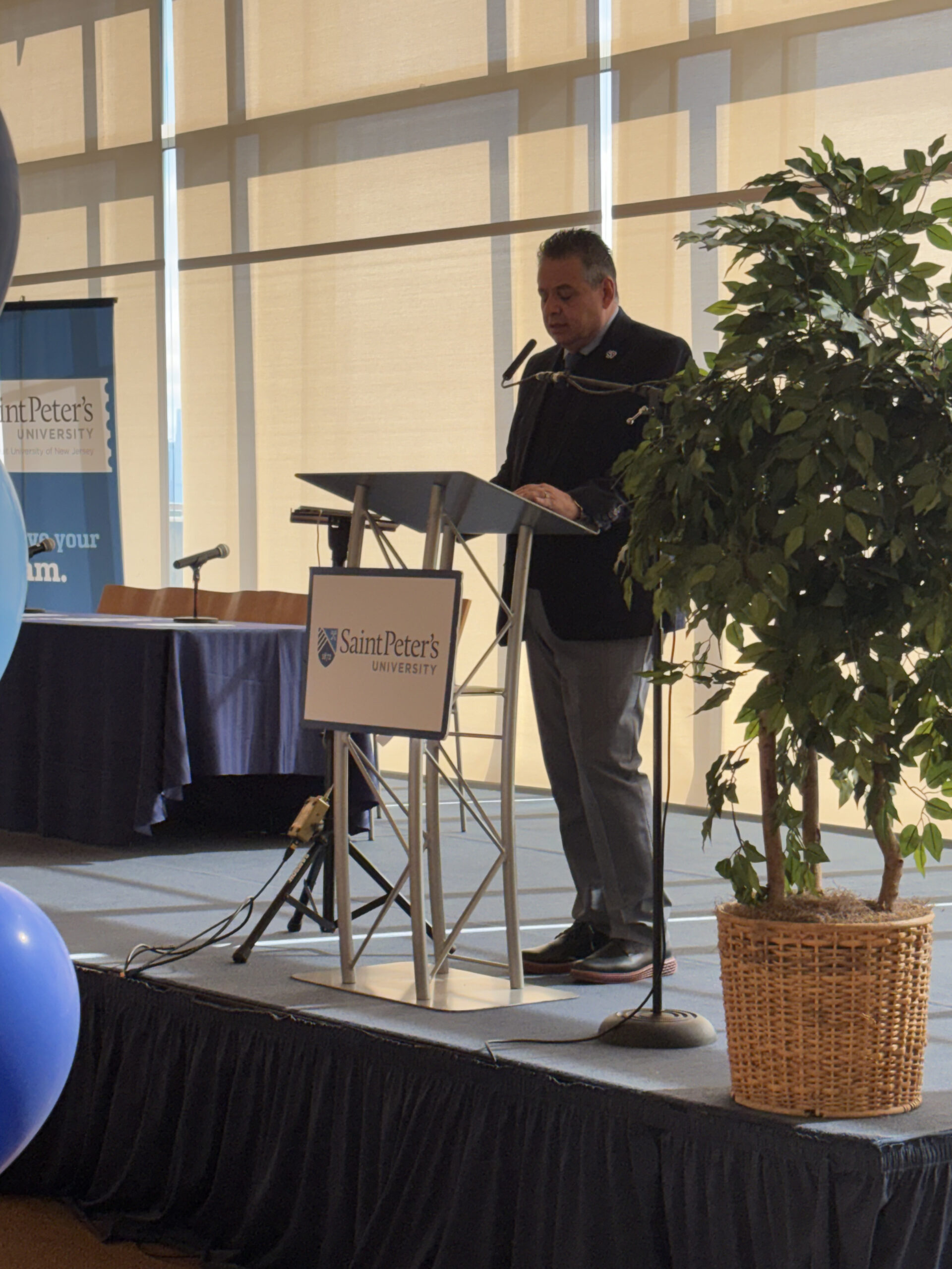 University President Hubert Benitez, D.D.S., Ph.D. then addressed the crowd, stressing that an education at Saint Peter’s is not only about what goes on in the classroom, but is also strongly focused on how faculty and staff care for their students. Recounting his own experience as a father, Dr. Benitez stressed the importance of incoming students truly feeling that they belong at whatever institution they choose to attend. Dr. Benitez then relished the opportunity to “work the room”, walking among the crowd and engaging in conversation with the families in attendance. He went on to stress that choosing the right college is a two-way investment to a better future, one that Saint Peter’s is ready to fully support with a strong Jesuit academic foundation, top-tier on-campus living accommodations and facilities, and generous financial aid packages.