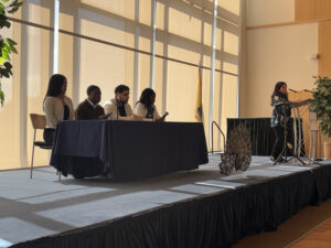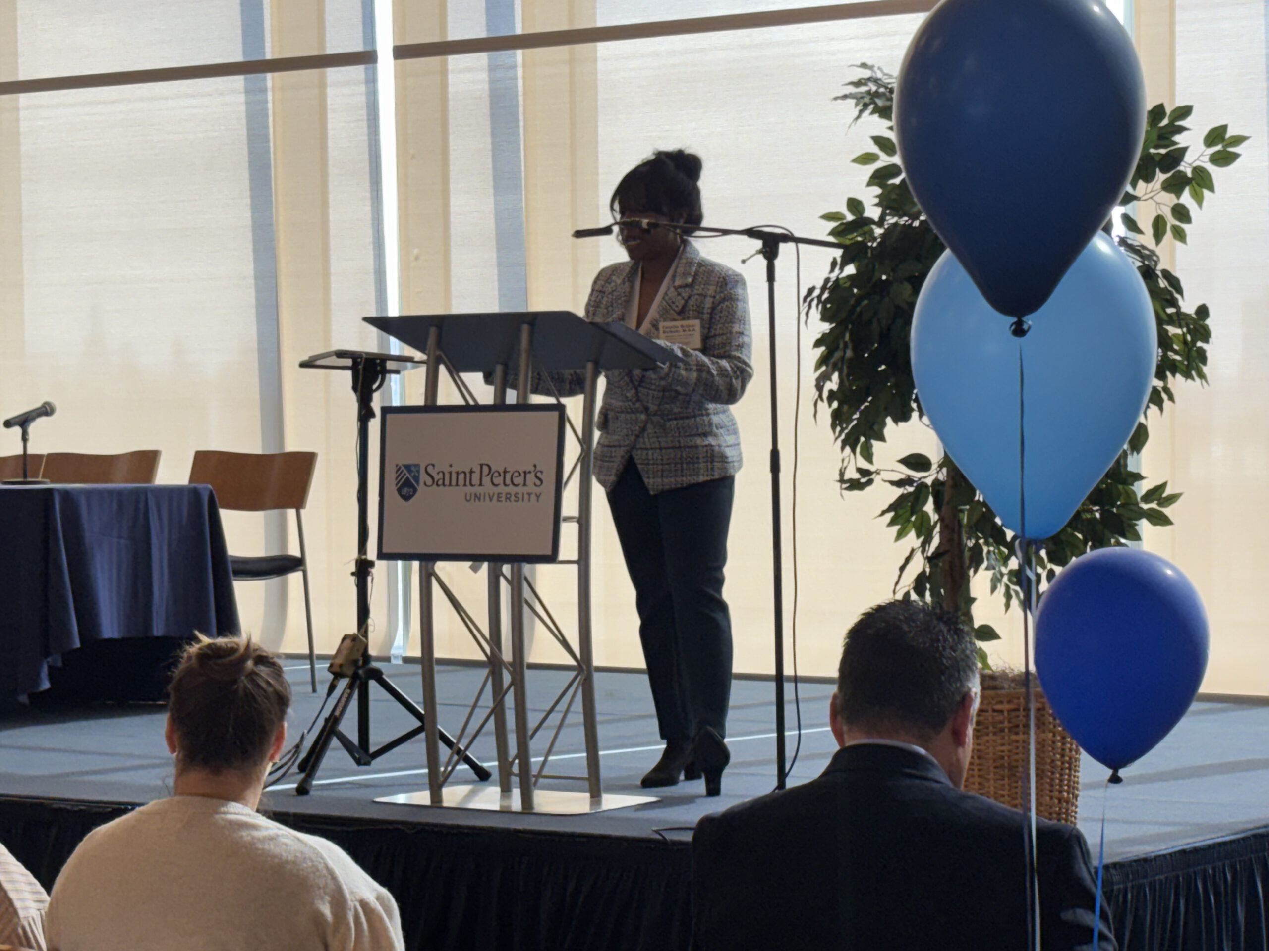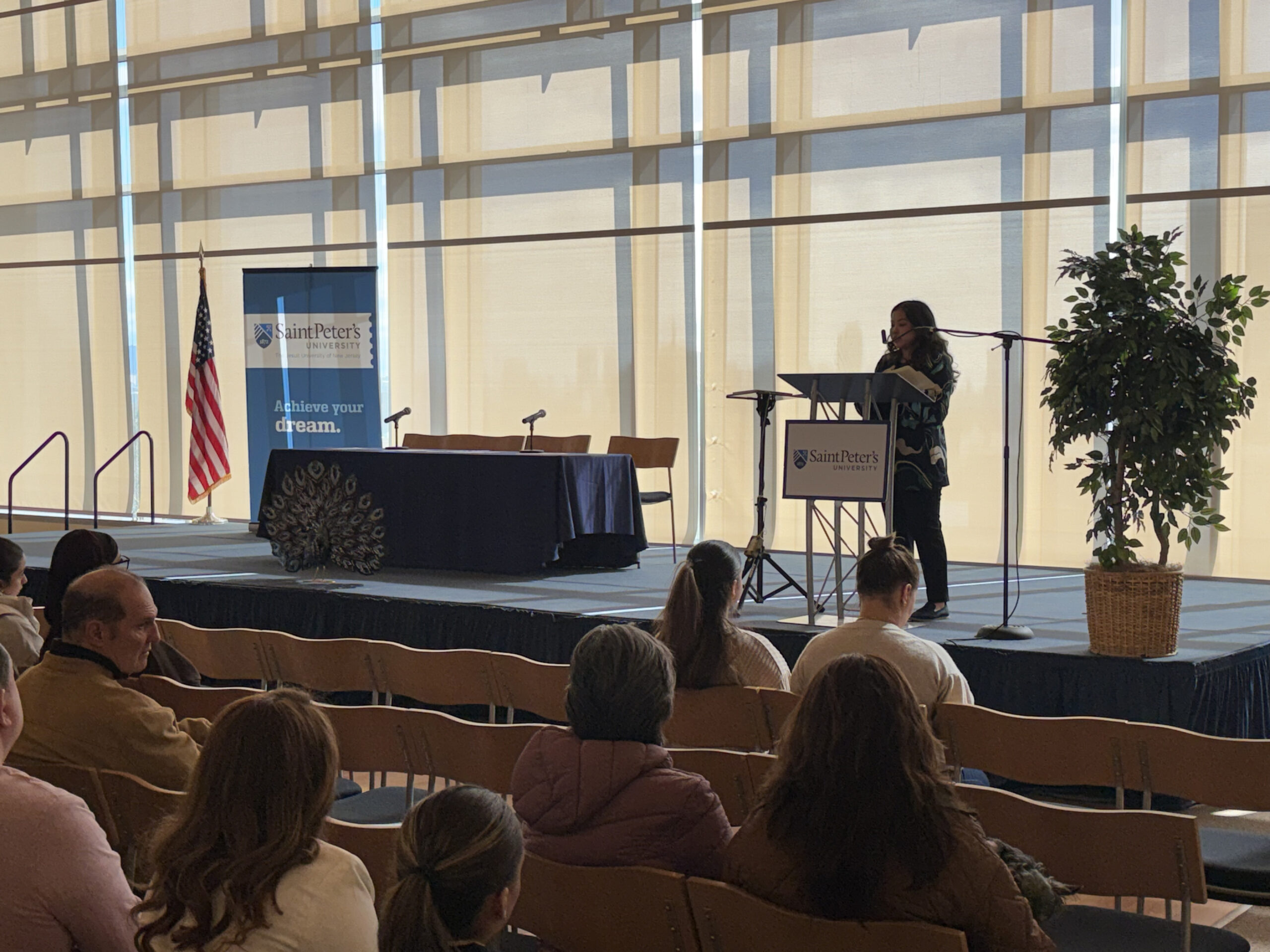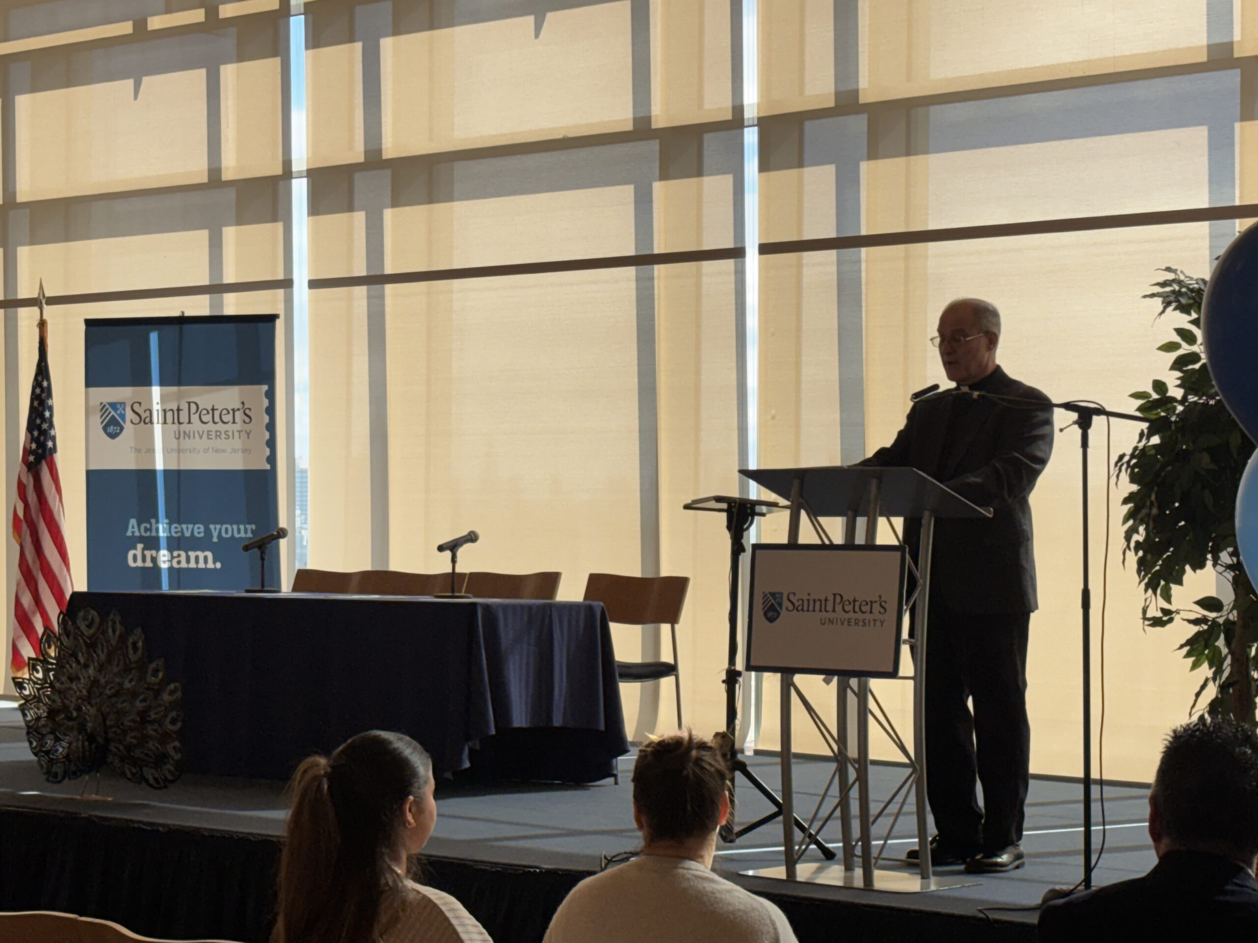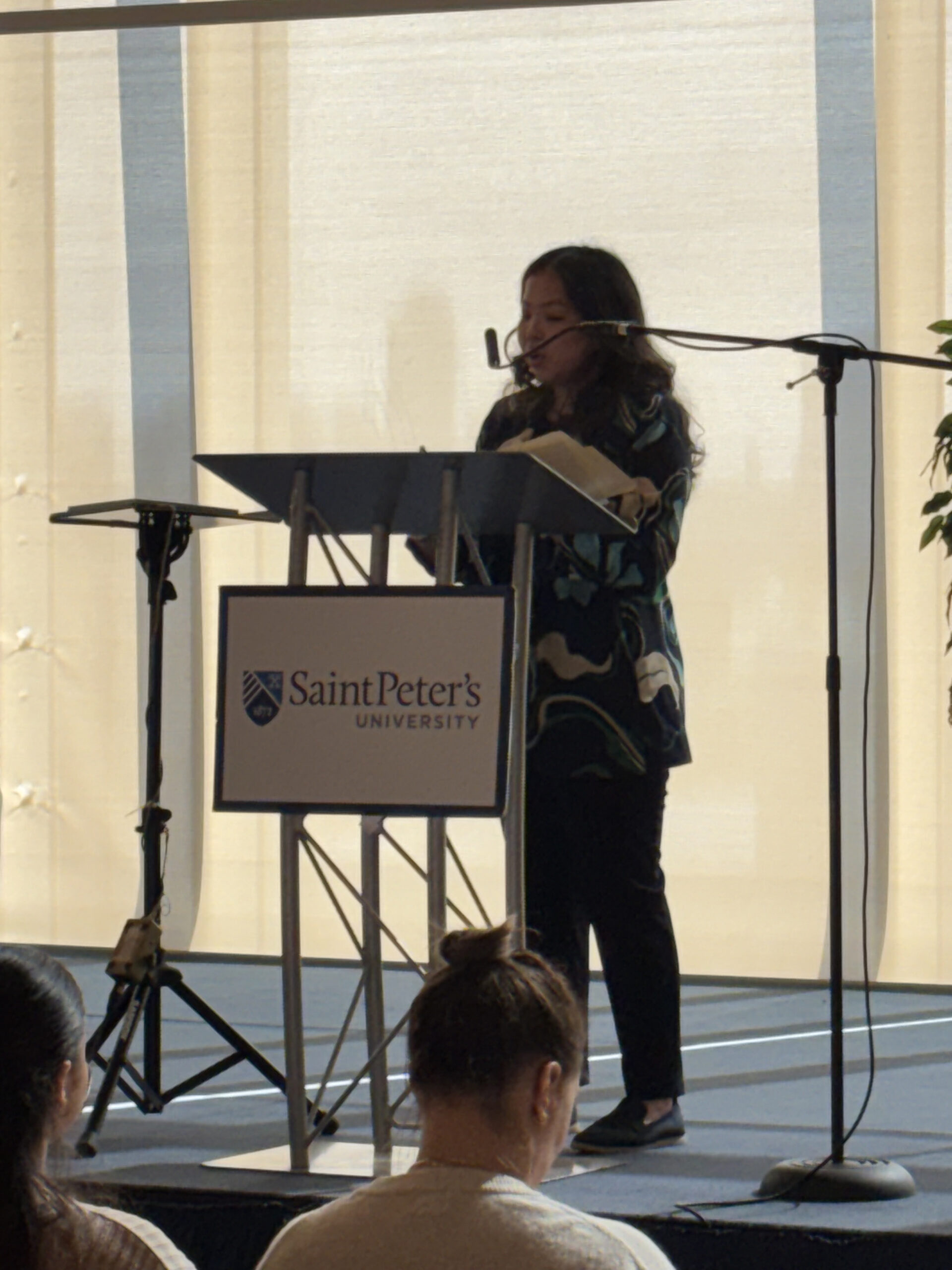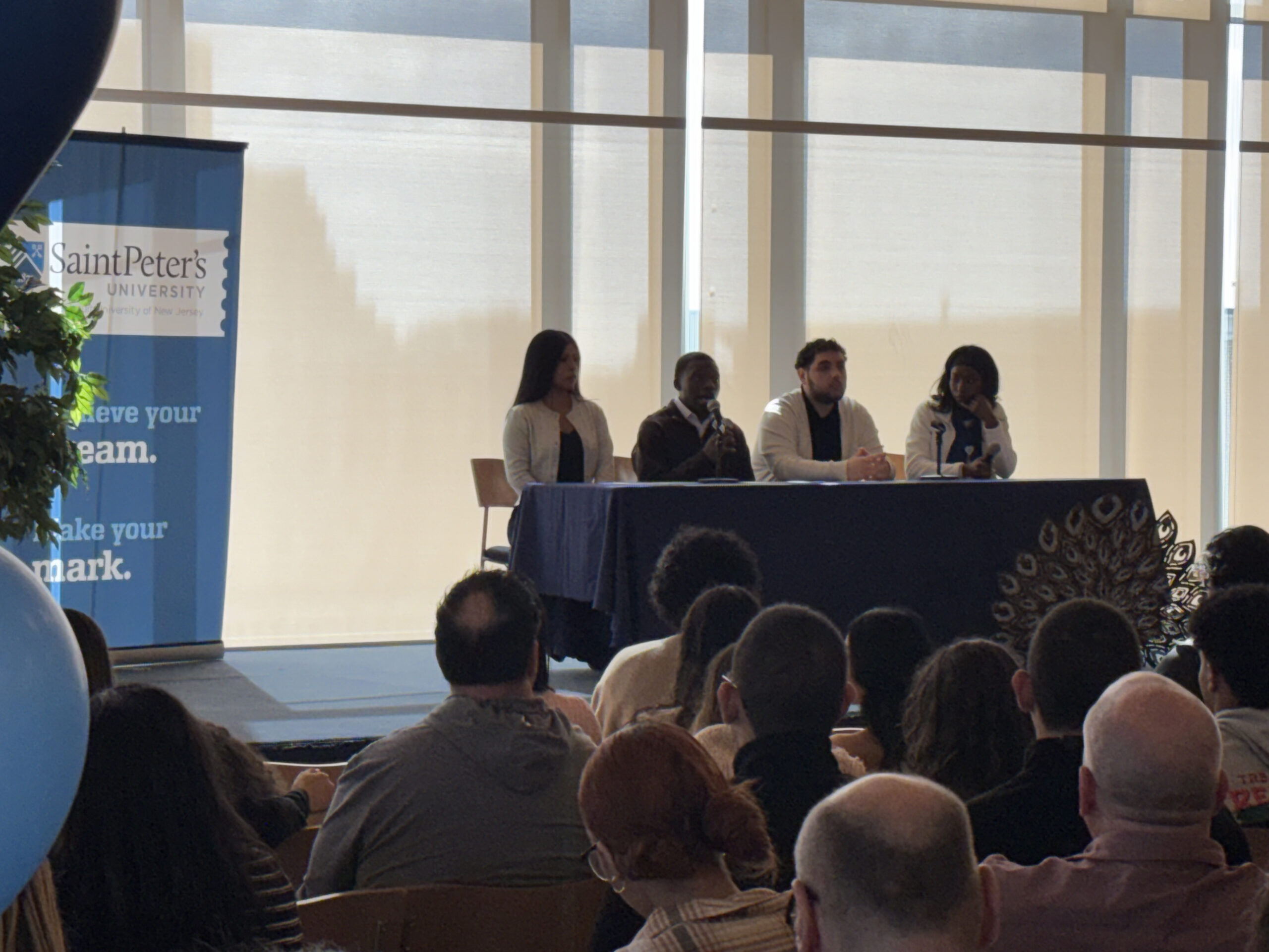 Before embarking on campus tours and a glimpse into the academic offerings at Saint Peter’s, guests were treated to an informative student panel. Current Saint Peter’s students Tindi Awinyo (transfer student from Kenya, Nursing major), James Aziz (Sophomore, Nursing major), Oluwadarasimi (Jide) Ajisafe (Junior, Health Sciences major) and Tiffany Verastegui (Freshman, Forensic Psychology major) addressed the Class of 2030 with details about their decision to attend Saint Peter’s and what they found most important during their college search.