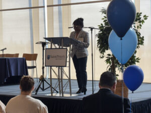 Camille Braker-Balkum, Assistant Vice President for Enrollment Management opened the festivities by welcoming all guests to the Mac Mahon Student Center. Vice President for Mission Integration and Ministry Fr. James Miracky, S.J. then offered a prayer and blessing. He noted the importance of the pillars of a Jesuit education, focusing on the notion of cura personalis (care for the whole person) and asked all those in attendance to pray for discernment.