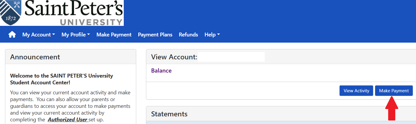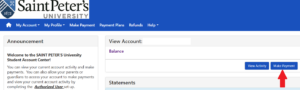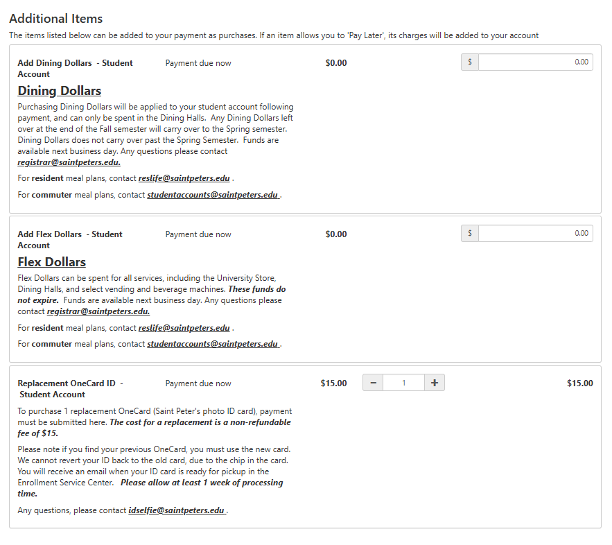 Should you have any questions or need assistance, please contact the Student Accounts Office at studentaccounts@saintpeters.edu.